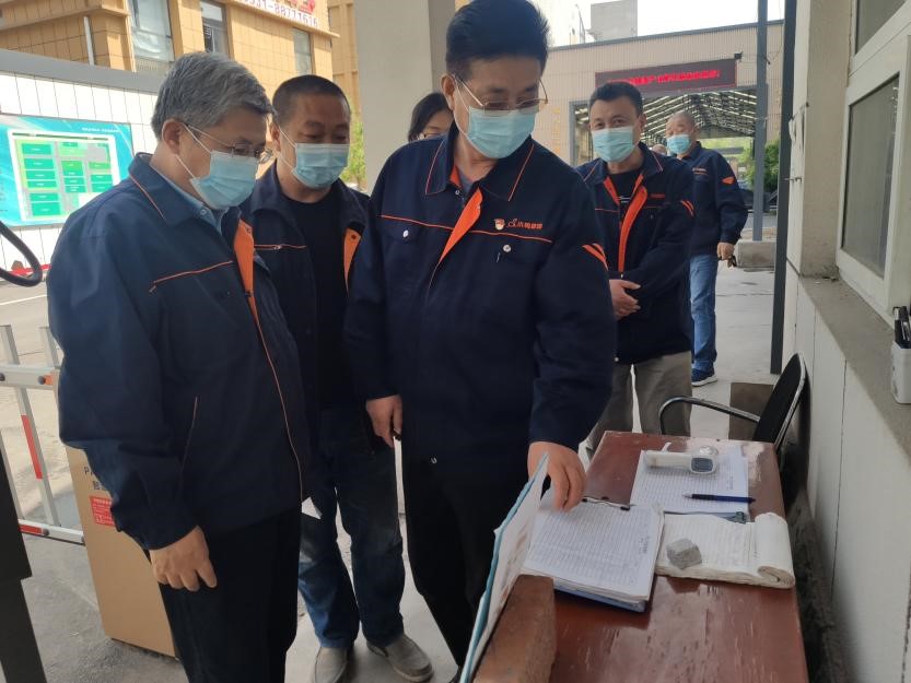 督導(dǎo)檢查組檢查集團(tuán)園區(qū)大門疫情防控工作情況,叮囑工作人員守好疫情防控第一道防線。
