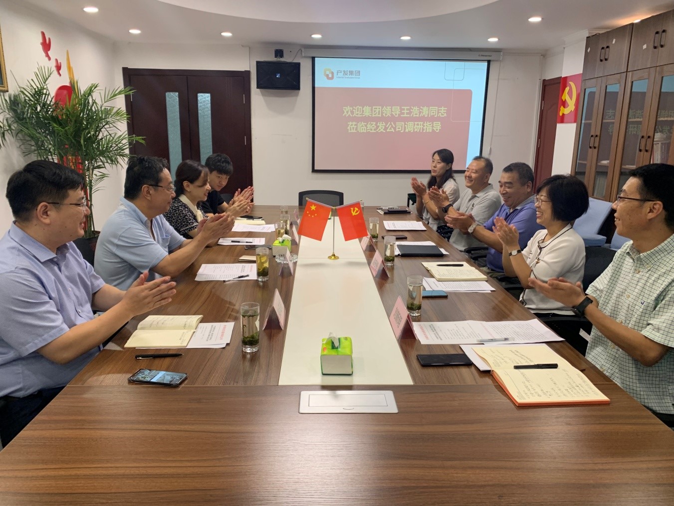 8月5日上午,產(chǎn)發(fā)集團(tuán)黨委委員、副總經(jīng)理王浩濤同志一行到濟(jì)南經(jīng)濟(jì)發(fā)展有限公司進(jìn)行調(diào)研。企管集團(tuán)黨委書記、董事長(zhǎng)張欣同志,黨委副書記、總經(jīng)理朱風(fēng)亮同志等陪同調(diào)研。經(jīng)發(fā)公司黨支部書記、執(zhí)行董事長(zhǎng)劉濤同志以及經(jīng)發(fā)公司經(jīng)營(yíng)班子成員迎接調(diào)研并匯報(bào)工作。