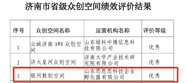 近日,山東省科學技術廳發(fā)布了《2024年度省級科技企業(yè)孵化載體績效評價結果》,產(chǎn)發(fā)集團旗下濟南科技創(chuàng)業(yè)投資集團有限公司運營的銀河數(shù)創(chuàng)空間憑借優(yōu)異的孵化創(chuàng)新成果及豐富的創(chuàng)新創(chuàng)業(yè)服務經(jīng)驗,獲評“優(yōu)秀”等級。