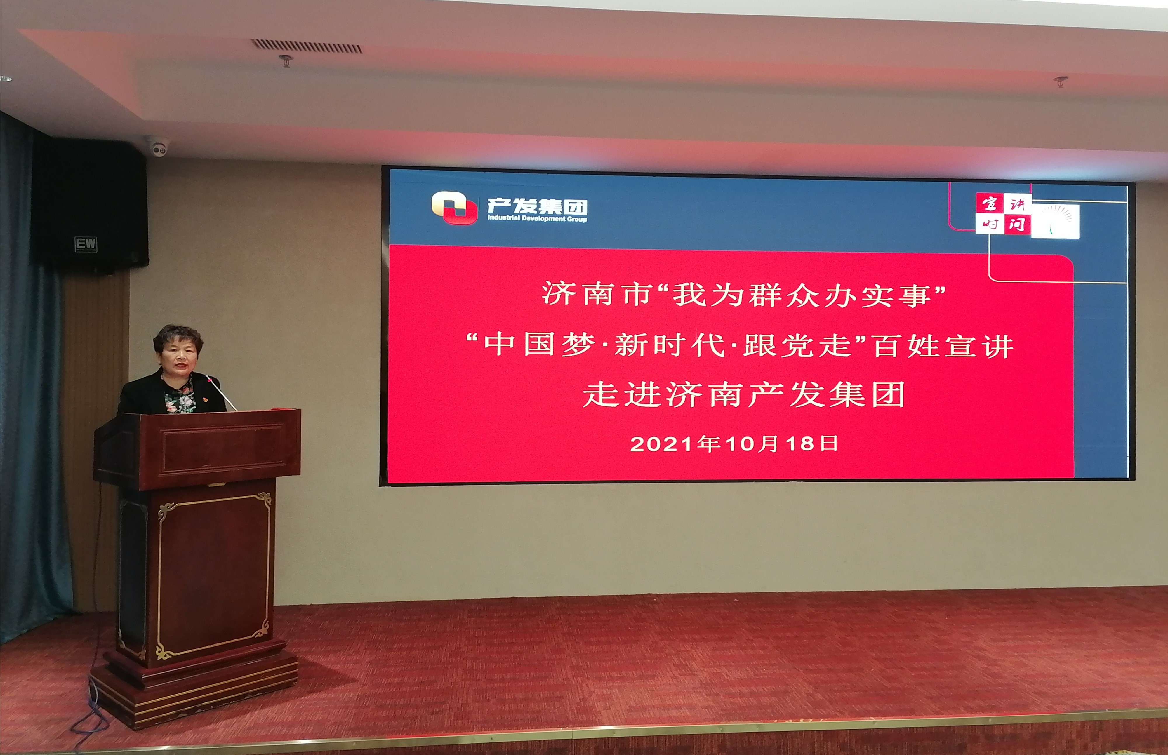 為深入貫徹落實(shí)習(xí)近平總書記“七一”重要講話精神,扎實(shí)推進(jìn)黨史學(xué)習(xí)教育“我為群眾辦實(shí)事”活動(dòng),10月18日下午,濟(jì)南市“我為群眾辦實(shí)事”“中國夢(mèng)·新時(shí)代·跟黨走”百姓宣講活動(dòng)走進(jìn)濟(jì)南產(chǎn)發(fā)集團(tuán)。在市委講師團(tuán)副處級(jí)干部呂桂紅的率領(lǐng)下,“我為群眾辦實(shí)事”百姓宣講團(tuán)的6位宣講員用他們的親歷、親聞、親為,為產(chǎn)發(fā)集團(tuán)50余名參會(huì)干部職工講述“聽黨話、跟黨走、率先垂范、主動(dòng)擔(dān)當(dāng)、無私奉獻(xiàn)”的動(dòng)人故事。