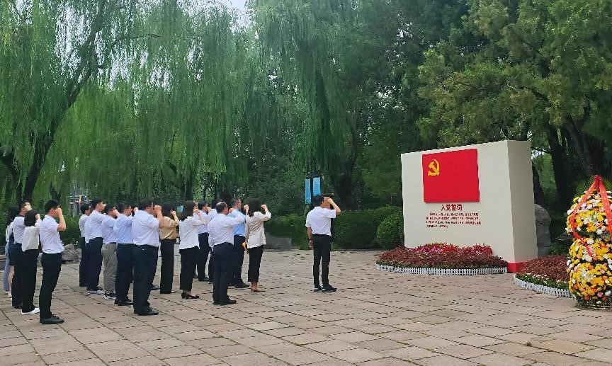 在美銘廣場,黨員干部們一同為王盡美、鄧恩銘紀(jì)念石雕獻(xiàn)花。隨后,由集團(tuán)黨委委員、紀(jì)委書記盧剛帶領(lǐng)全體黨員干部,現(xiàn)場宣誓,重溫入黨誓詞,回顧入黨宣誓時的莊嚴(yán)承諾和堅定決心,提醒全體黨員始終不忘初心,牢記作為黨員的責(zé)任和使命,時刻以優(yōu)秀共產(chǎn)黨員的標(biāo)準(zhǔn)嚴(yán)格要求自己,遵守黨的紀(jì)律,積極投身黨的事業(yè),發(fā)揮黨員的先鋒模范作用。